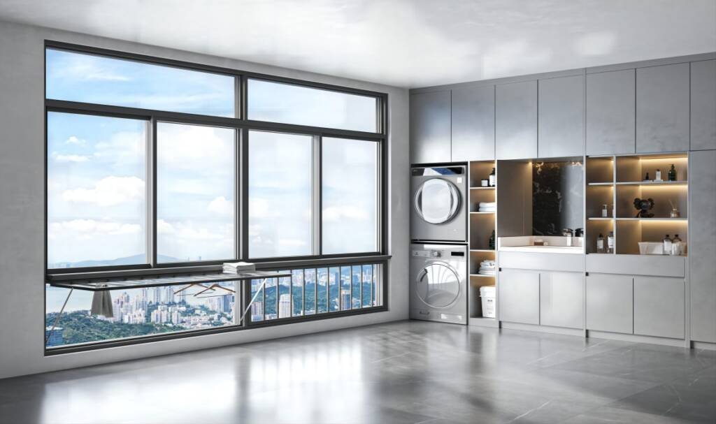 With its fully hidden frame design and six-track configuration, this window allows for expansive openings and unobstructed views while maintaining a sleek, minimalist appearance. PA66 (Polyamide 66) thermal insulation strips, EPDM sealing strips, and a middle hollow structure work together to deliver superior thermal efficiency and airtight performance.
